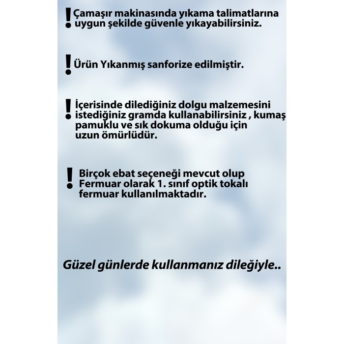 - Yıkama talimatlarına uygun şekilde bakım yapıldığında uzun ömürlü kullanım vaat eder.