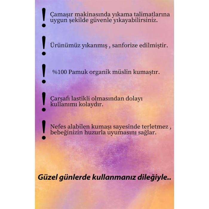 %100 Organik Pamuk 70x140 Müslin Lastikli Çarşaf (ÇİFT KAT) Anne Yanı & Beşik & Park Yatak